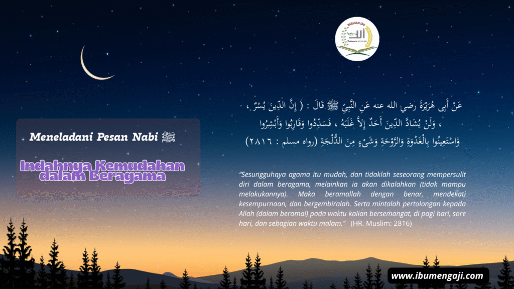 www.ibumengaji.com Hadits ini mengajarkan bahwa Islam adalah agama yang penuh kemudahan, keseimbangan, dan kasih sayang. Allah tidak menghendaki kesulitan bagi hamba-Nya, melainkan ingin memberikan petunjuk yang sesuai dengan kemampuan manusia. Beragama tidak dimaksudkan untuk menyiksa diri dengan beban ibadah yang berlebihan, melainkan dilakukan secara bertahap, proporsional, dan berkesinambungan. Sikap memaksakan diri dalam beribadah justru akan […]