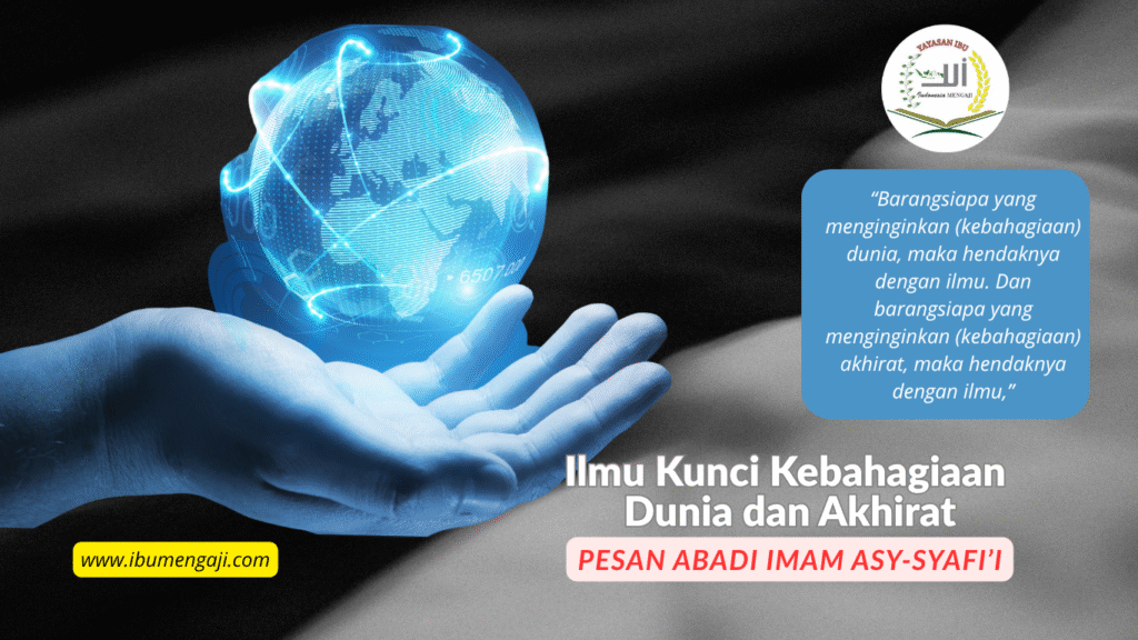 www.ibumengaji.com Ungkapan penuh makna dari Imam Asy-Syafi’i rahimahullah, “Barangsiapa yang menginginkan (kebahagiaan) dunia, maka hendaknya dengan ilmu. Dan barangsiapa yang menginginkan (kebahagiaan) akhirat, maka hendaknya dengan ilmu,” bukan sekadar nasihat, tetapi sebuah prinsip hidup yang mendalam. Ucapan ini diriwayatkan dalam Manaqib Asy-Syafi’i, sebuah karya yang menyingkap keutamaan, perjalanan hidup, dan kebijaksanaan Imam besar tersebut. Secara […]