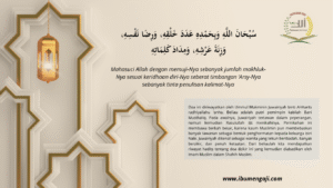 www.ibumengaji.com Doa yang agung ini bersumber dari sebuah riwayat hadits yang diriwayatkan oleh Ummul Mukminin, Juwairiyah binti Al-Harits radhiyallahu ‘anha, salah seorang istri Nabi Muhammad