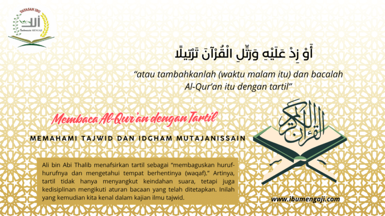 Membaca Al-Qur’an dengan tartil adalah perintah langsung dari Allah SWT yang mengajarkan kita untuk tidak tergesa-gesa, melainkan penuh kesungguhan dan penghayatan. Melalui ilmu tajwid, kita diajarkan cara menjaga keaslian bacaan sebagaimana Rasulullah SAW mencontohkan. Salah satunya adalah memahami hukum idgham mutajanissain, yang melatih kita agar bacaan Al-Qur’an lebih fasih, indah, dan sesuai aturan.